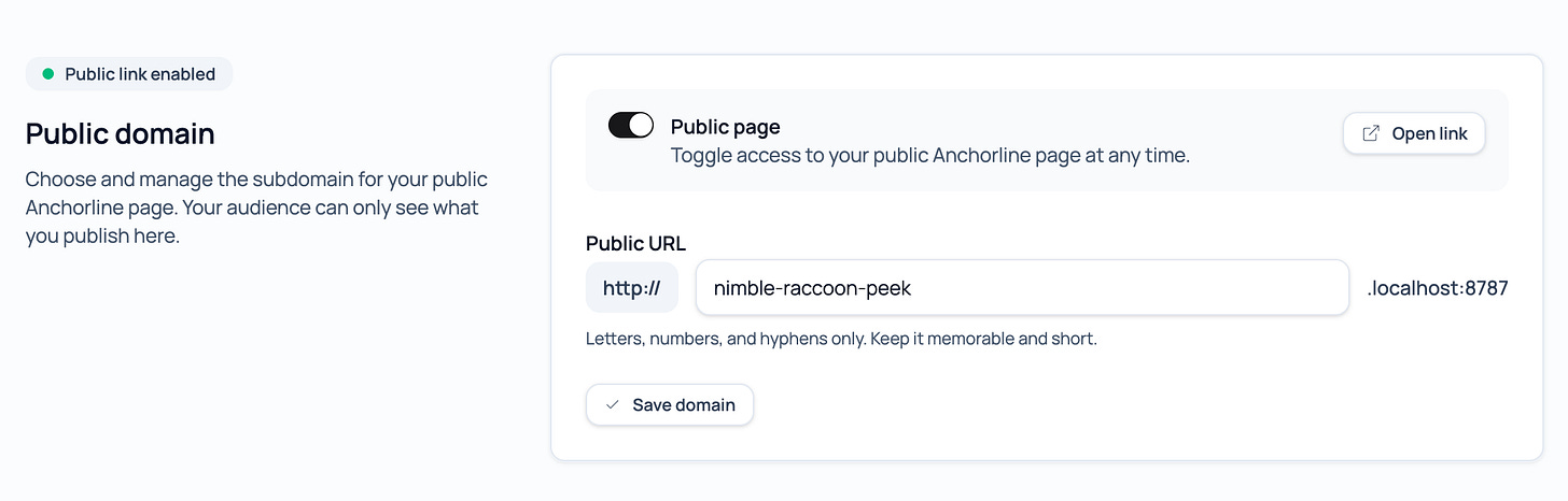 First it’s important to know that Anchorline has a lesser-known capability where every user can have their own subdomain and publish public logs. These public logs are meant to be shareable, fast, and cheap to serve. At the same time, the private Anchorline API is locked down behind Cloudflare Access, and the public pages are served by a simple Node app running on Cloudflare Pages.